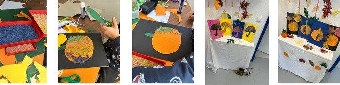 Gemeinsam mit den Kindern haben wir „Vogelsand“ mit verschiedenen Farben gestaltet. Die Kinder hatten dabei sehr viel Spaß. Anschließend entstanden fantasievolle und kreative Kunstwerke, die die Kinder selbst entwarfen. Natürlich haben wir die Ergebnisse auch den Eltern präsentiert: Im Flur richteten wir einen kleinen Ausstellungsstand ein, an dem die Bilder der Kinder bewundert werden konnten. Die Eltern hatten so die Möglichkeit, die schönen Werke ihrer Kinder zu sehen. Zum Abschluss gingen wir mit den Kindern einkaufen, kauften verschiedene Lebensmittel und backten anschließend gemeinsam einen verzauberten Kuchen. Das war ein besonderes Highlight und bereitete allen viel Freude.